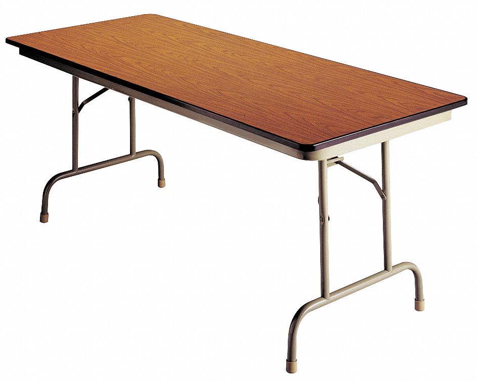 STEEL FOLDING-LEG TABLE LAMINATE SHAPE RECTANGULAR WIDTH 96 IN. HEIGHT 29 IN. TABLETOP COLOR WALNUT EDGE COLOR BLACK FRAME COLOR BEIGE TOP THICKNESS 0.787 IN. SURFACE MATERIAL HIGH PRESSURE LAMINATE FRAME MATERIAL STEEL WEIGHT CAPACITY 1500 LBS EDGE TYPE T-MOLDING LEG TYPE WISHBONE ASSEMBLY NOT REQUIRED STANDARDS BIFMA COLOR WALNUT/BEIGE GREEN ENVIRONMENTAL ATTRIBUTE MINIMUM 30 PERCENT POST-CONSUMER RECYCLED CONTENT