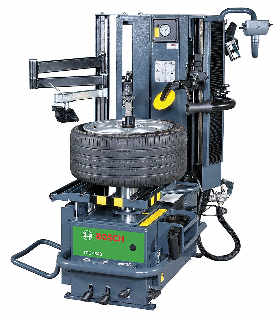 TIRE CHANGER AIR OPERATED LENGTH (IN.) 73 TIRE RIM DIA (IN.) 49 30 IN TIRE CAPACITY REQUIRED AIR PSI 116-145 MOTOR VOLTAGE 220 MOTOR AMPS 20 MATERIAL STEEL AND PLASTIC MEDIUM TO HIGH VOLUME TIRE SERVICE WITH FULL TIRE COVERAGE FOR USE WITH CARS NUMBER OF PIECES 1 INCLUDES TIRE CHANGER